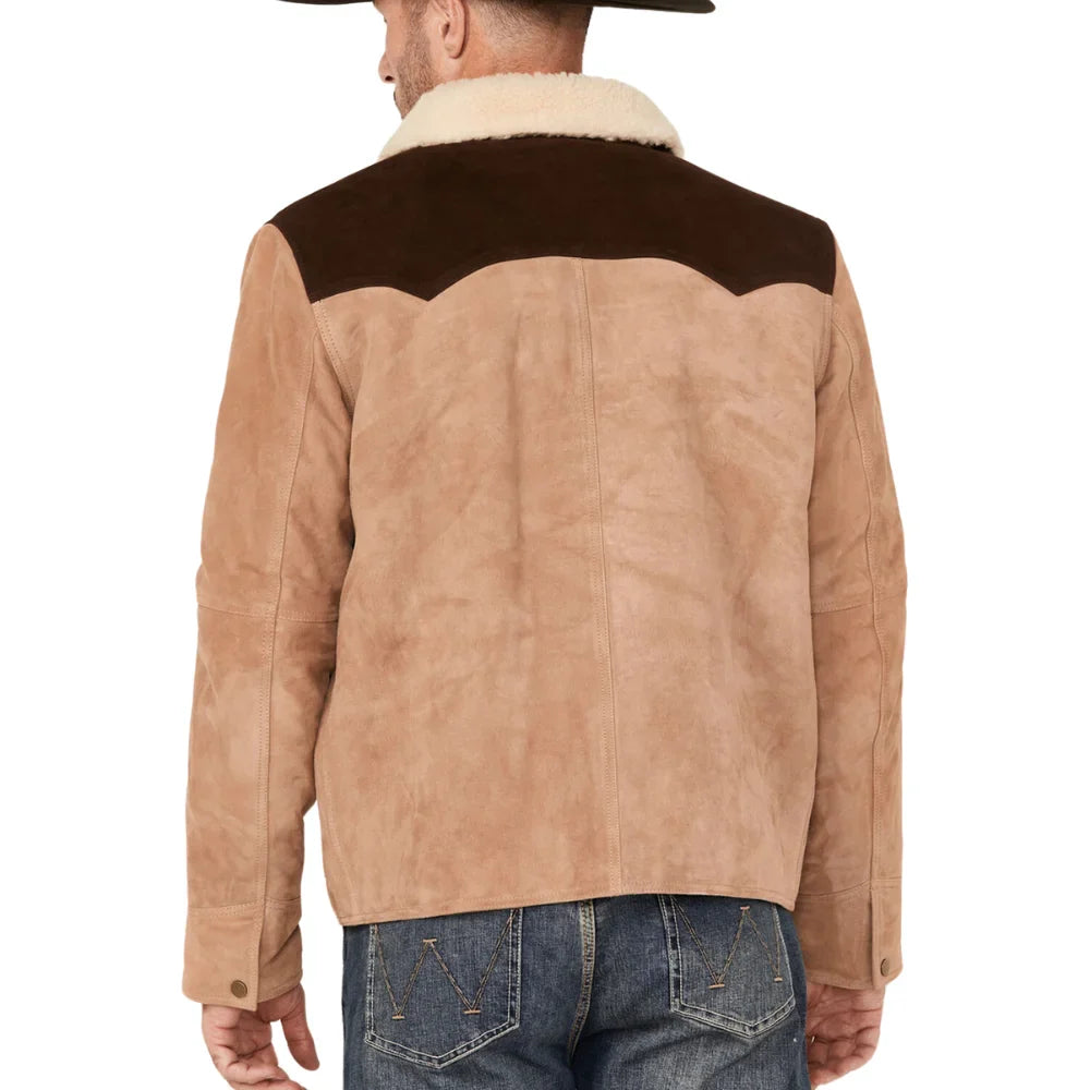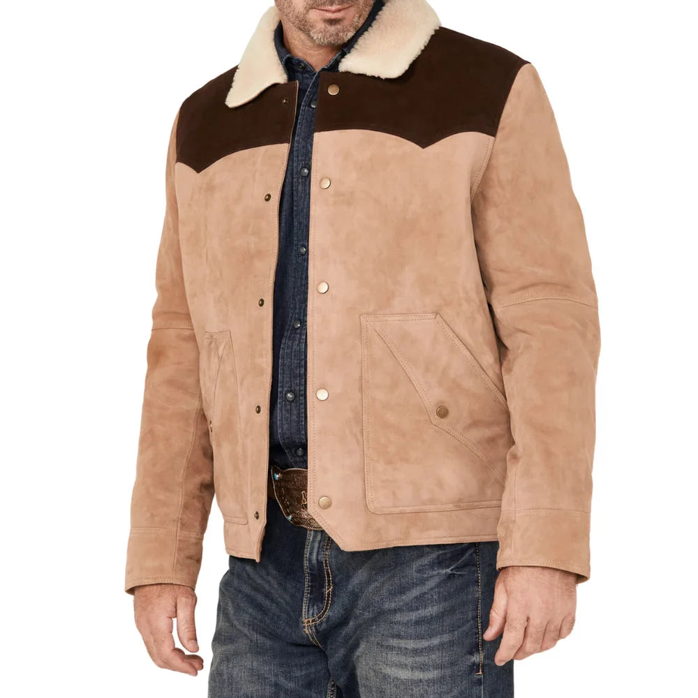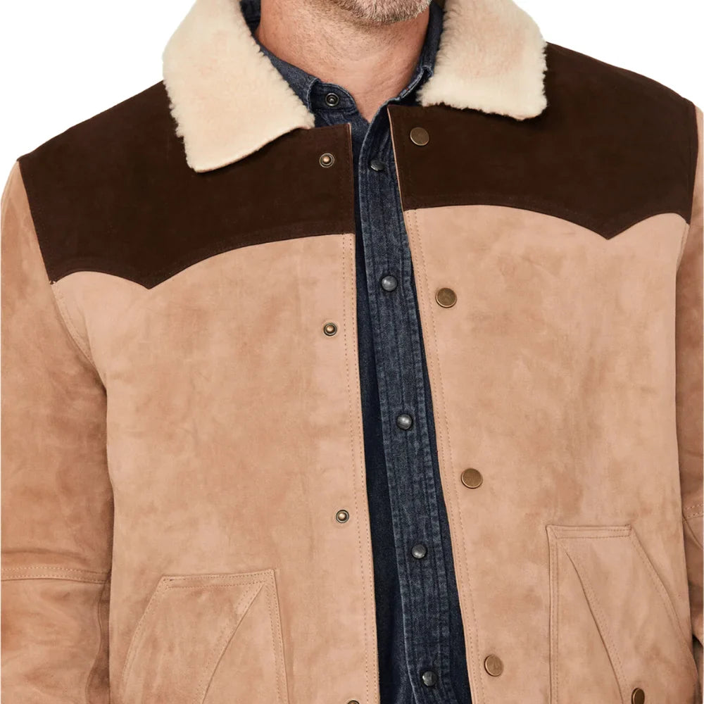 Mens Beige And Brown Suede Shearling Collar Dutton Jacket